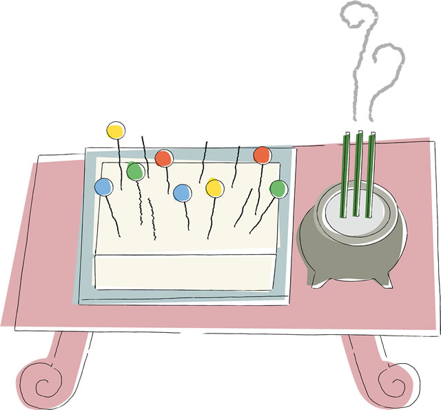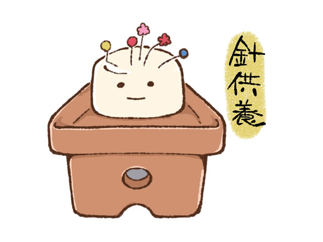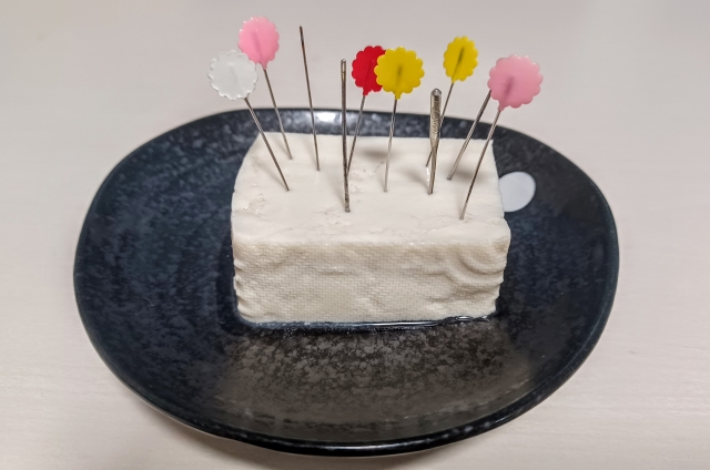 針供養では、使えなくなった針を柔らかい豆腐やこんにゃくに刺すのが一般的です。